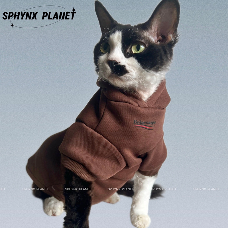 商品名称:バレンシアガ風猫服 冬着 猫パーカー Balenciaga 無毛猫の服 ネコ 冬服 猫 スフィンクス 服 皮膚保護 子犬コート パーカー かわいい 暖かい 防寒 猫用 秋冬衣装 暖かい