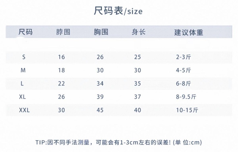 ***購入する前に、間違っていないようにペットのサイズを測定してください。