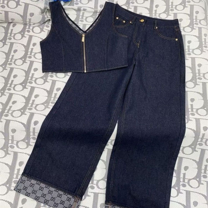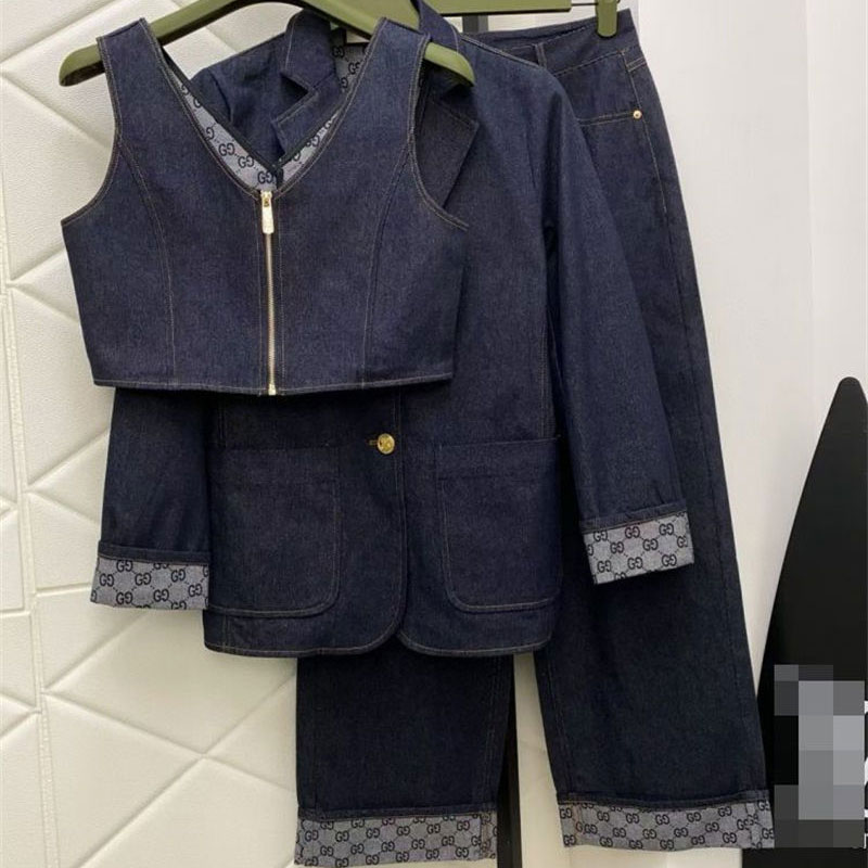 商品名:Ggハイブランドレディース セットアップ 秋 上下セット デニムジャケット タンクトップ ワイドパンツ 3点セットアップ ジャンパー ロングパンツ かわいい おしゃれ 秋服 カジュアル パーカー ジャージ