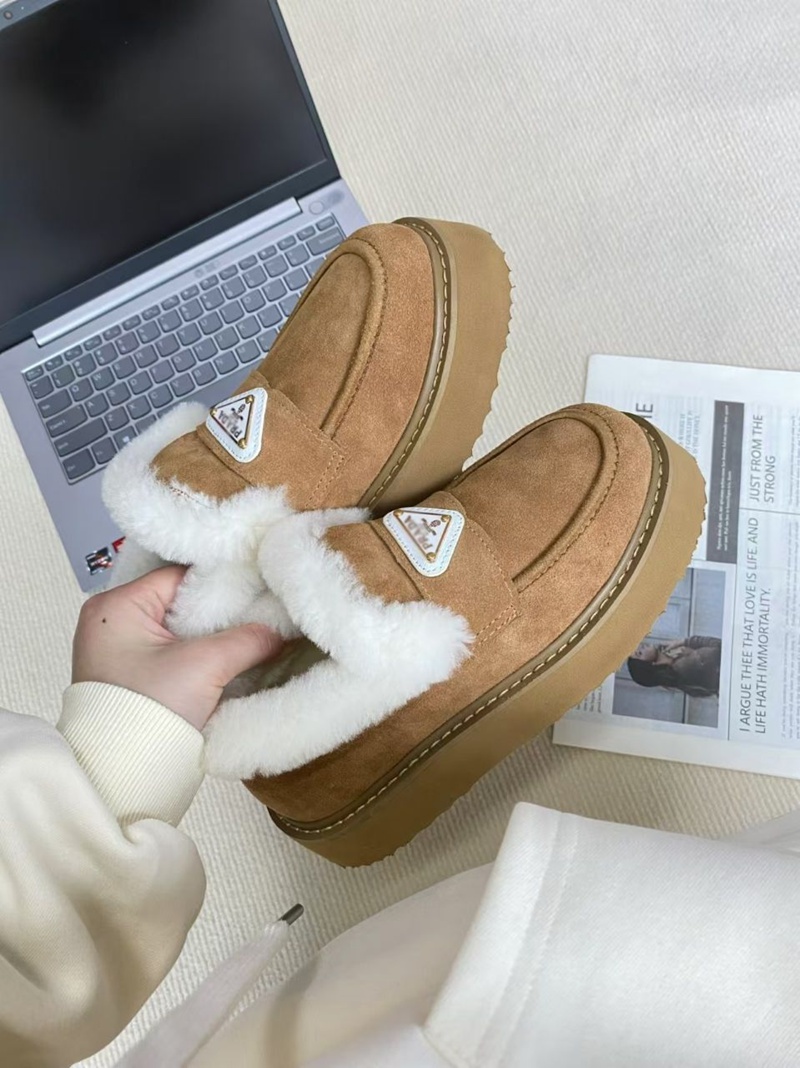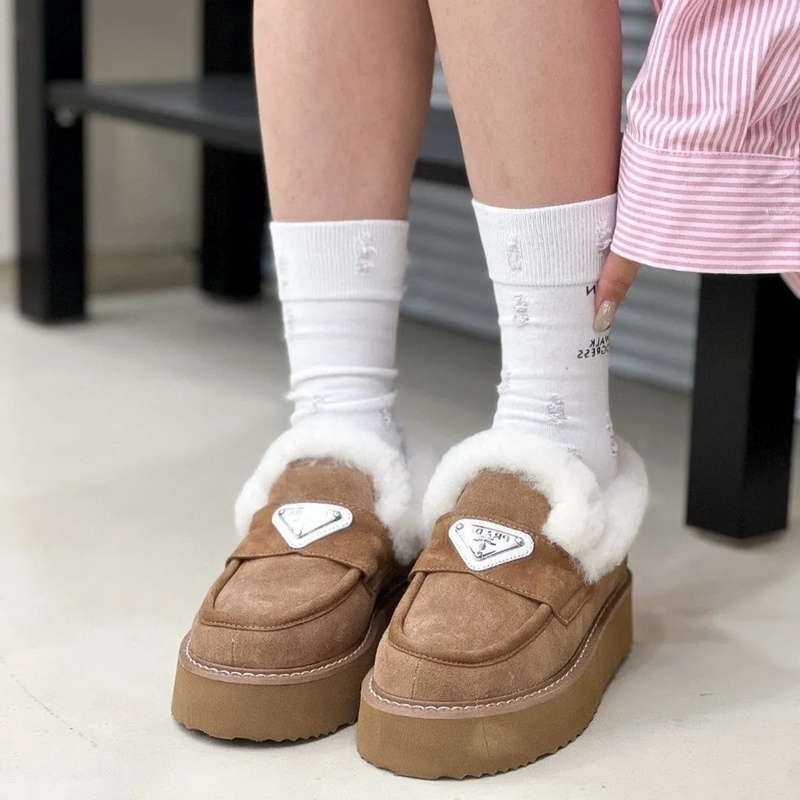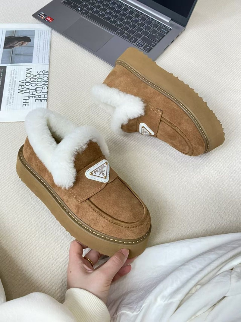 商品名称:Prada プラダモカシン レディース 秋冬 ローヒール スリッポンローファー 軽量 ボア もこもこ 暖かい カジュアル ファー デッキ シューズ 防寒 保温 冷え対策 滑り止め 歩きやすい ふわふわ 通勤通学婦人靴