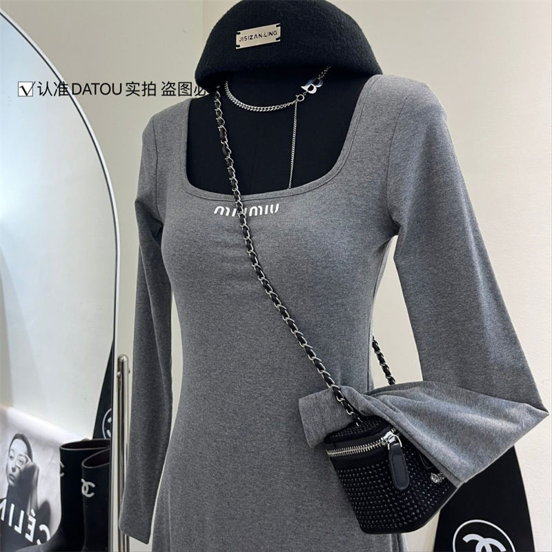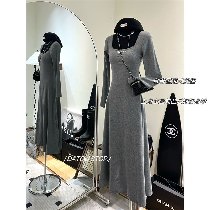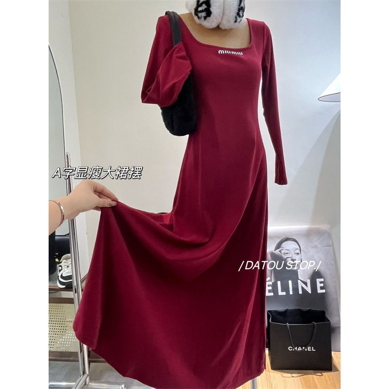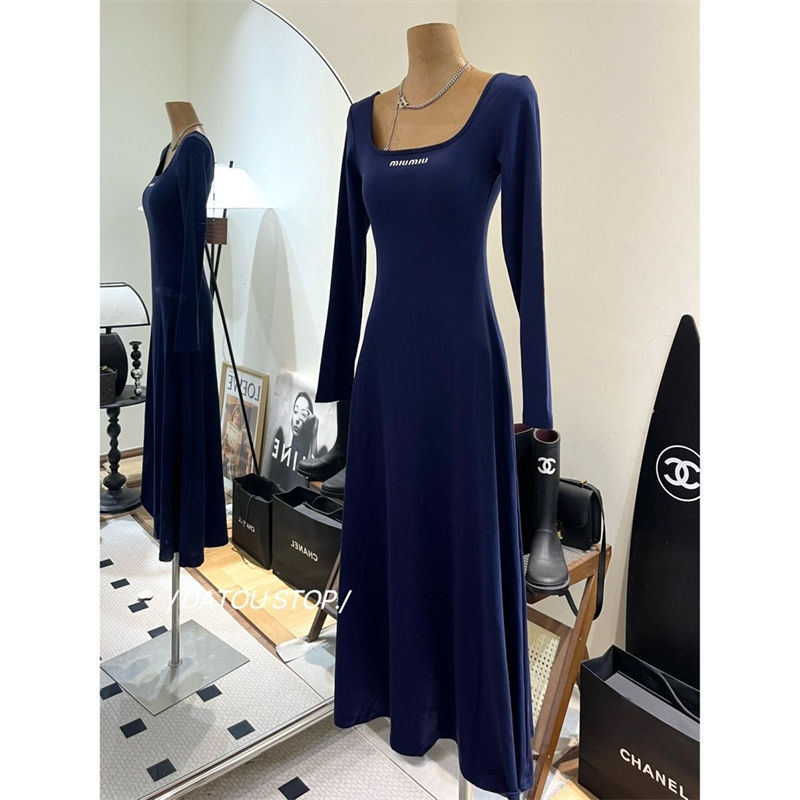 商品名称:ミュウミュウワンピース レディース 綿 ブランド MIUMIU ロングドレス 長袖 ロングスリーブ Aライン スリムフィット 気質 3カラーブロック ゆったり リラックス 着痩せ おしゃれ カジュアル オフィス 春 秋