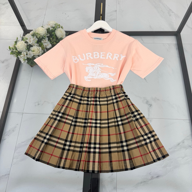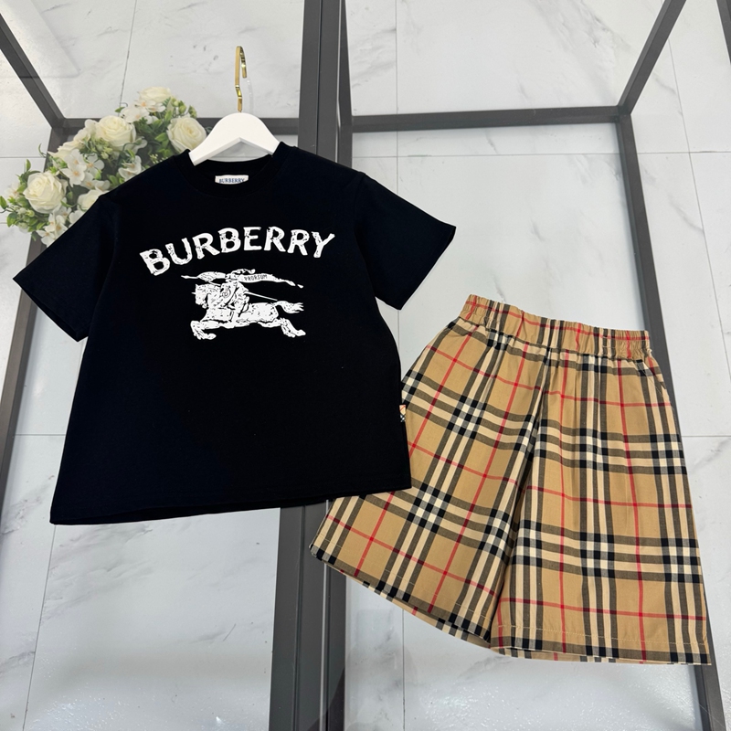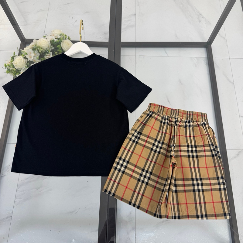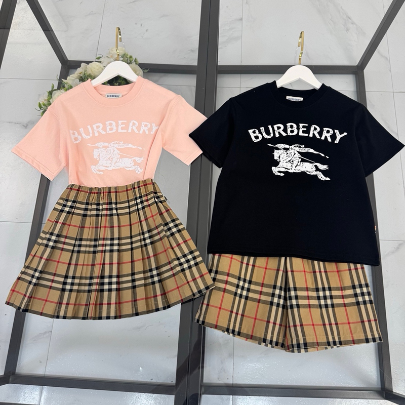 製品名:Burberry バーバリー風 キッズ服 セットアップ 男女兼用 半袖Tシャツ チェック柄 ミニスカート/ショーツ 子供服 おしゃれ コットン 上着 トップス