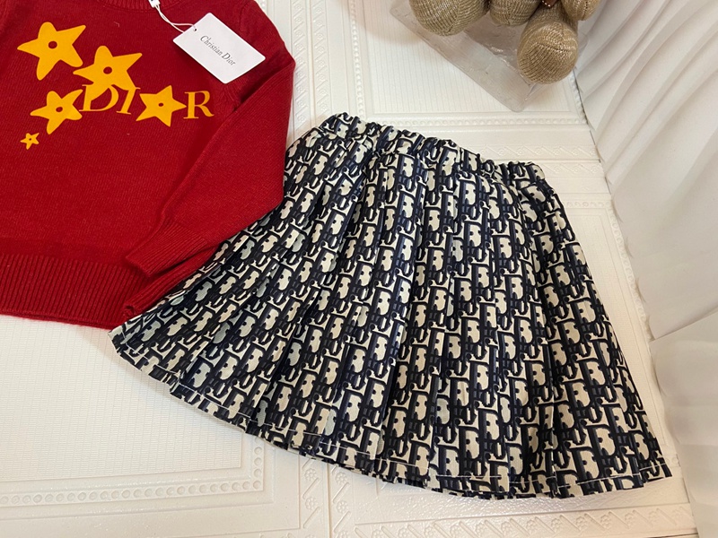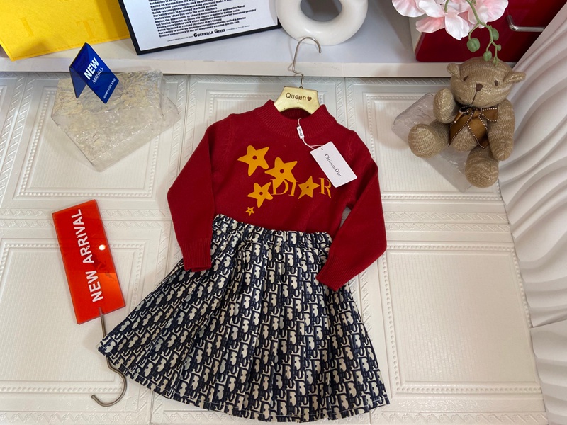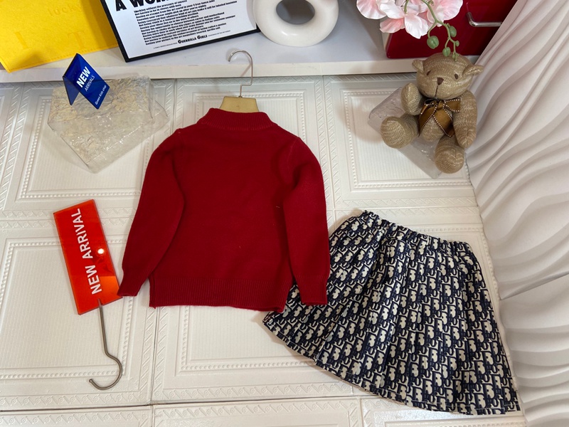 製品名:Dior ディオール 子供服 キッズ服 女の子 上下セット セーター+プリーツスカート ニットスーツ 長袖 トップス ニット 柔らかい おしゃれ 可愛い 子供スーツ 春 秋