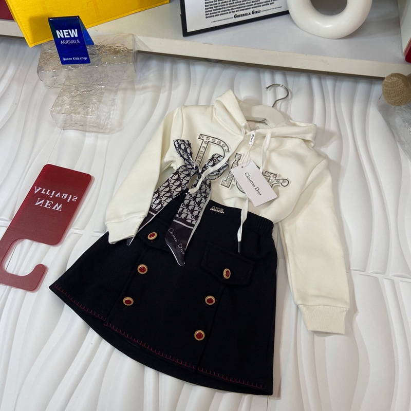 製品名:Dior ディオール 女の子 子供服 セットアップ 上下セット 2点 ジャージ 厚手スウェット トレーナー 裏起毛スカート 長袖 クルーネック 蝶結び 春 秋 可愛い 韓国風 小学生 中学生 通園 通学 ホワイト