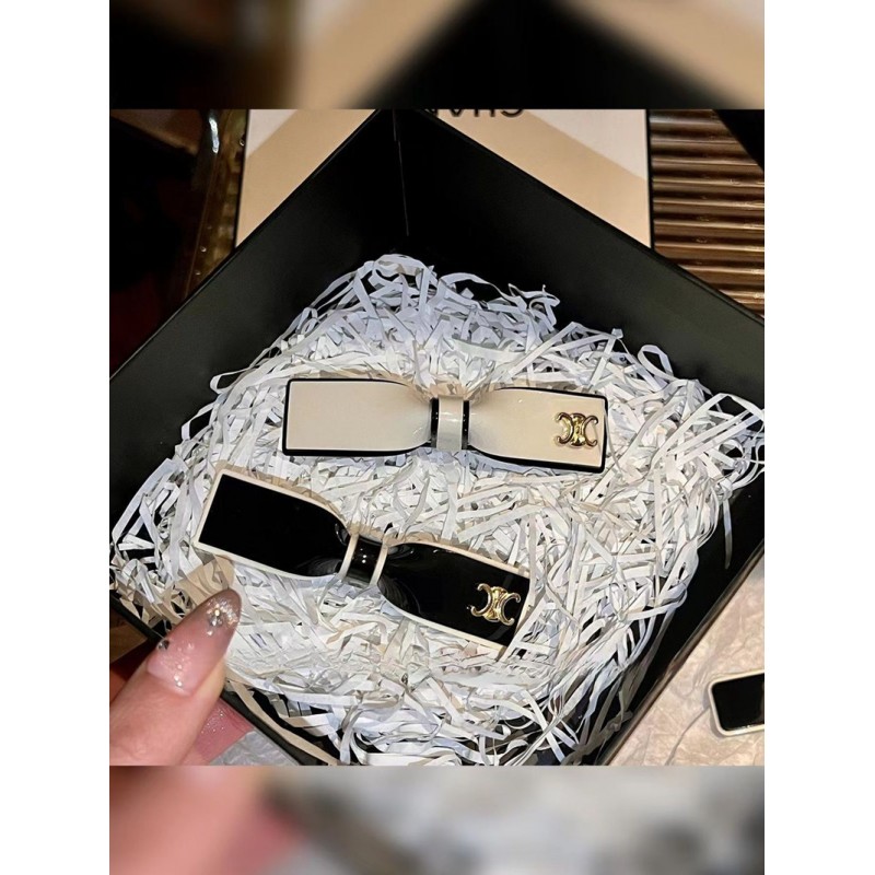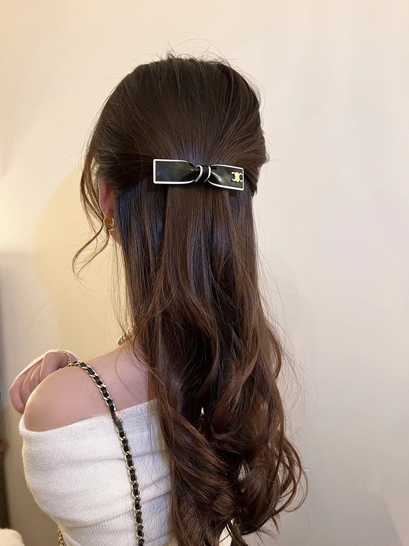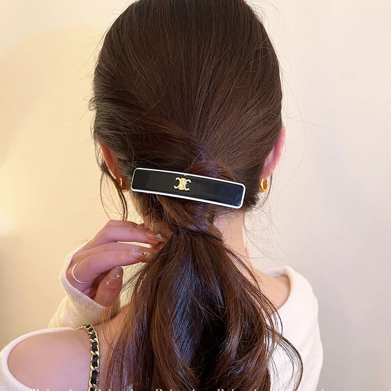 商品名:CELINE セリーヌバンスグリップ VINGTAINE ヘアピン シンプル リボンバナナクリップ エレガント ヘアクリップ オフィス ヘアアクセサリー 黒白