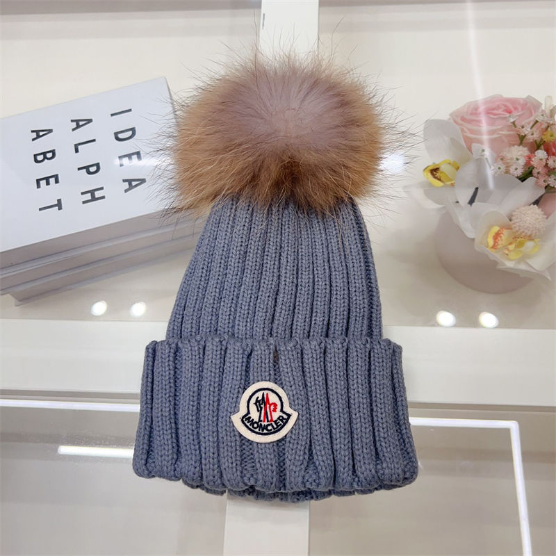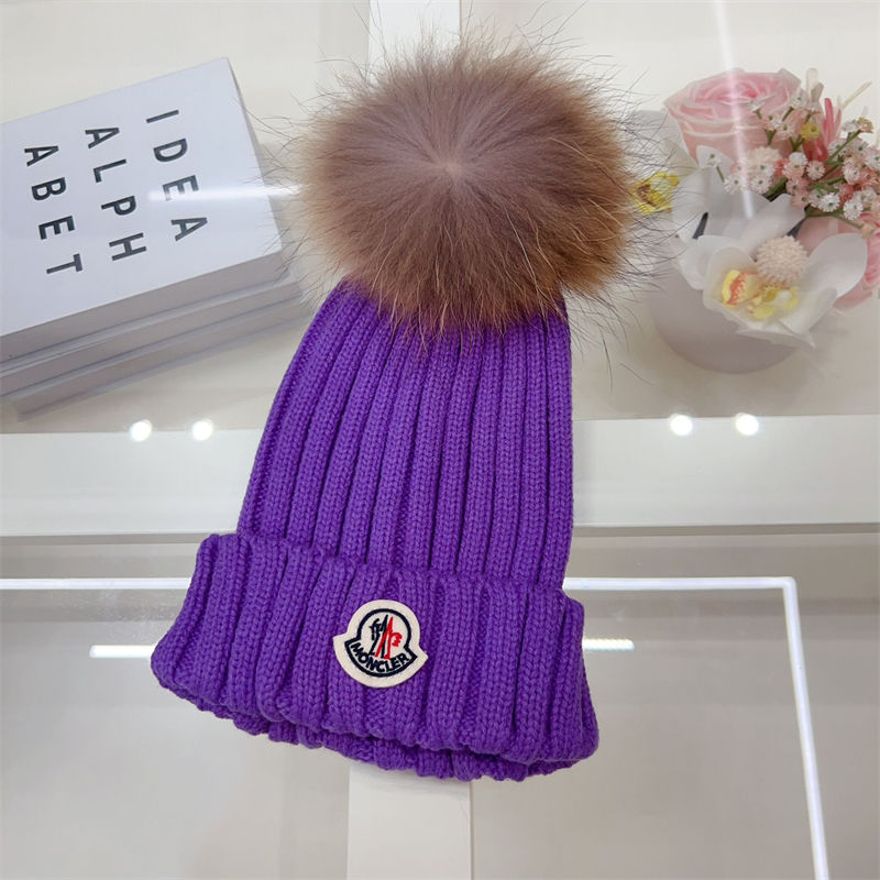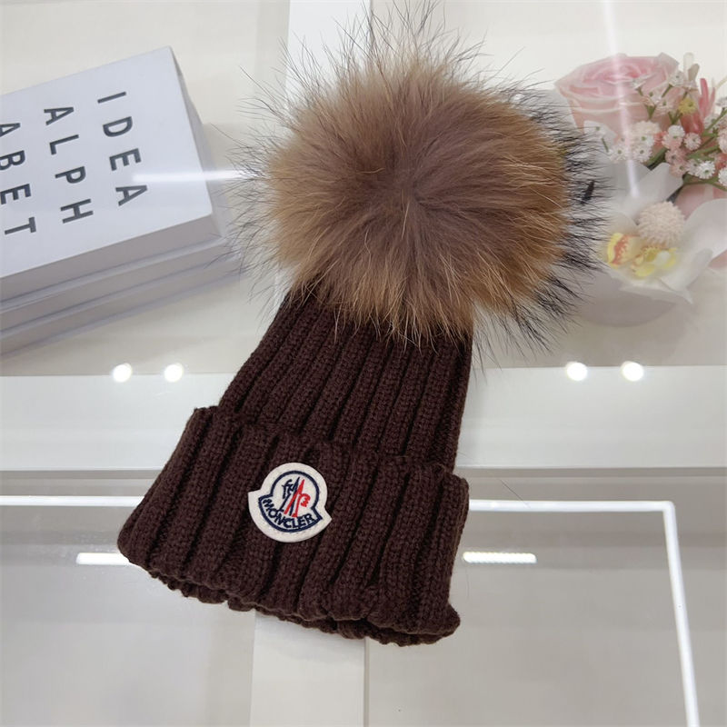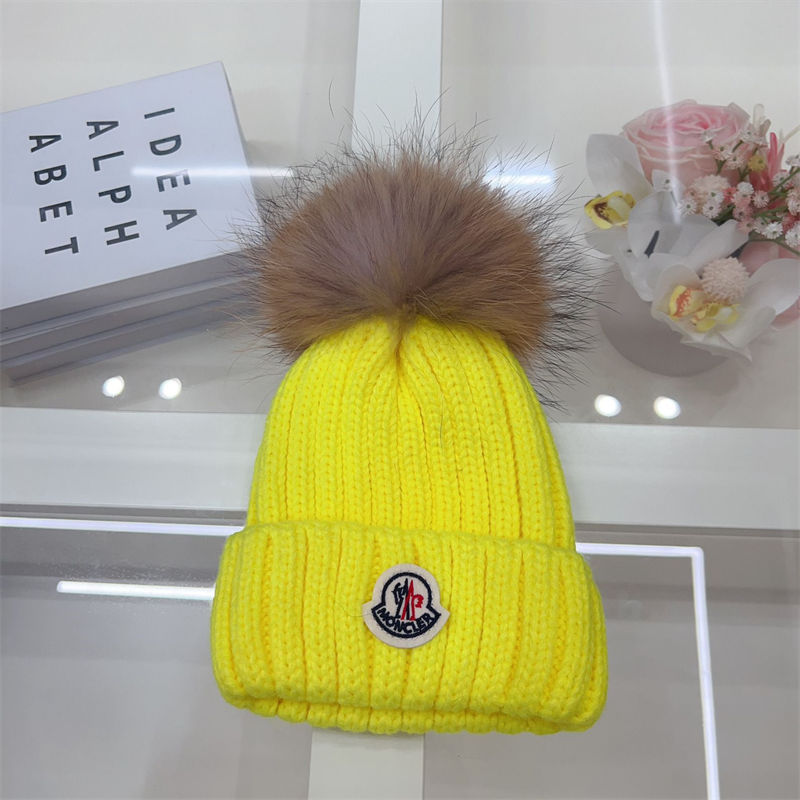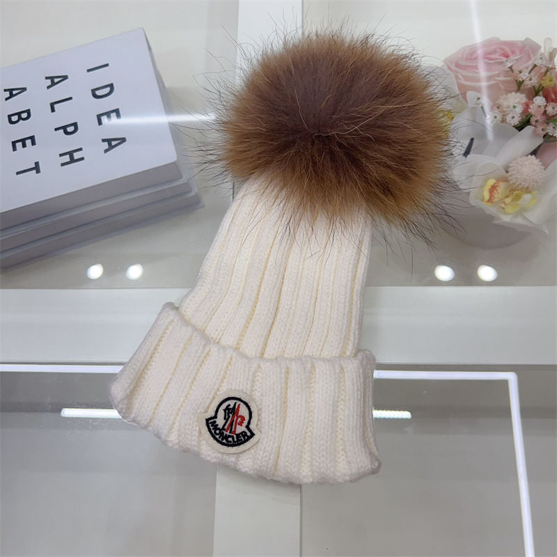 製品名:Moncler ニットキャップ モンクレールニット帽 ハイブランド女性用冬のポンポン付きビーニーハット 暖かい かわいい 厚手のスローチーなスノーニットスカルスキーハット