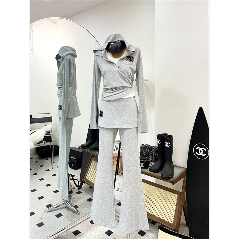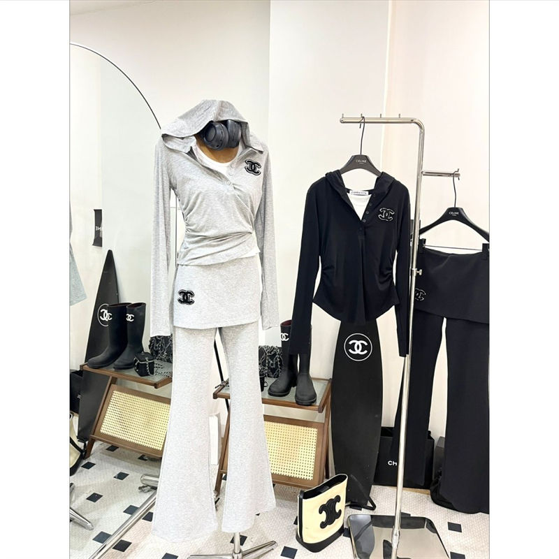 商品名:Chanel シャネルブランドレディース 上下 3点セット パンツセット セットアップ トレーナー ロングパンツ 春 秋 冬 長袖Tシャツ フード付き スリム カジュアル 運動着 普段着 部屋着 ジョギング