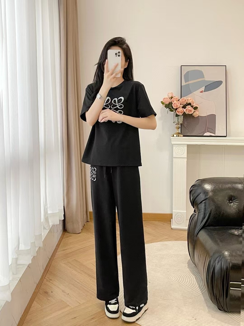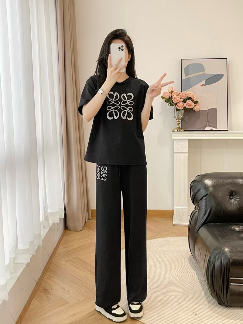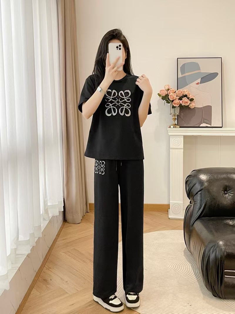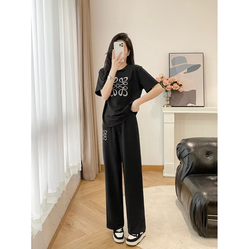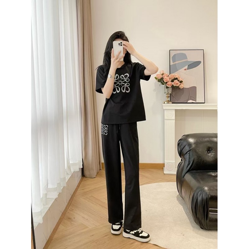 製品名:LOEWE ロエベ 上下セット スウェット セットアップ 半袖Tシャツ スポーツカジュアルウェア カジュアル SML ショート丈 ワイドパンツ トレーニング ジャージ アクティブウェア 総ゴム レディース