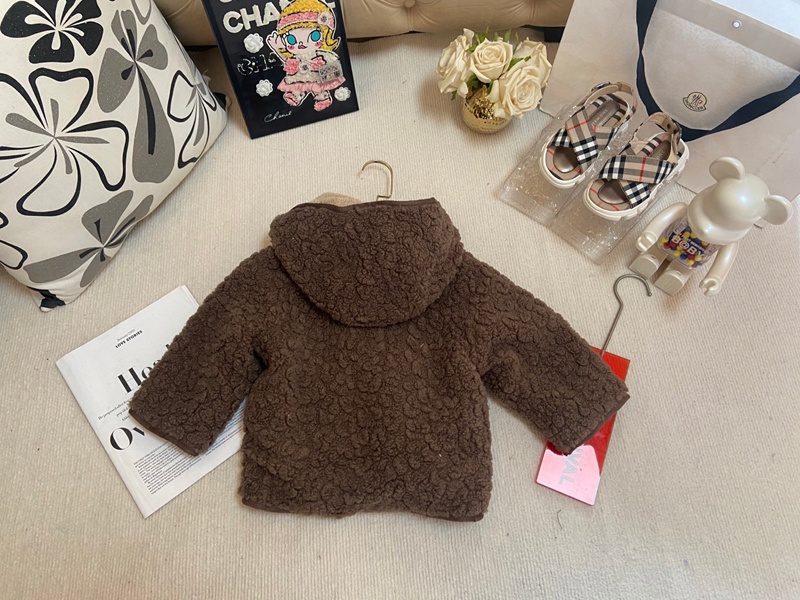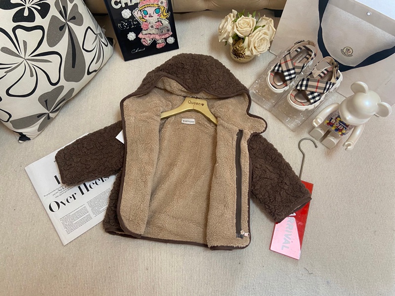 製品名:Moncler モンクレール子供服 ボアコート 女の子 フリースコート もこもこ 裏起毛 アウター 厚手 長袖 フード付き かわいい キッズ 暖かい 秋 冬 防寒 防風 韓国風 ブラウン