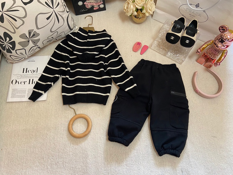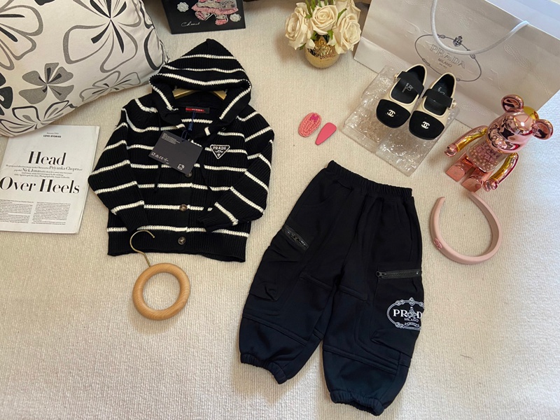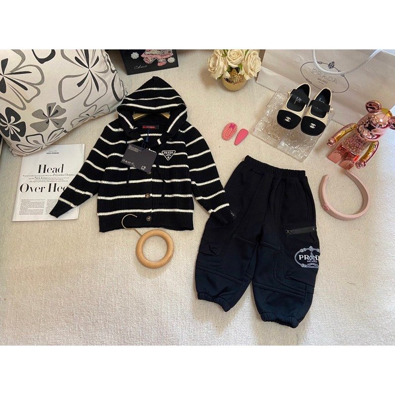 製品名:Prada プラダハイブランド 子供服 上下セット カーディガン セーター スウェットパンツ セットアップ ニットパーカー ポケット付き カジュアル 秋冬 キッズ かっこいい