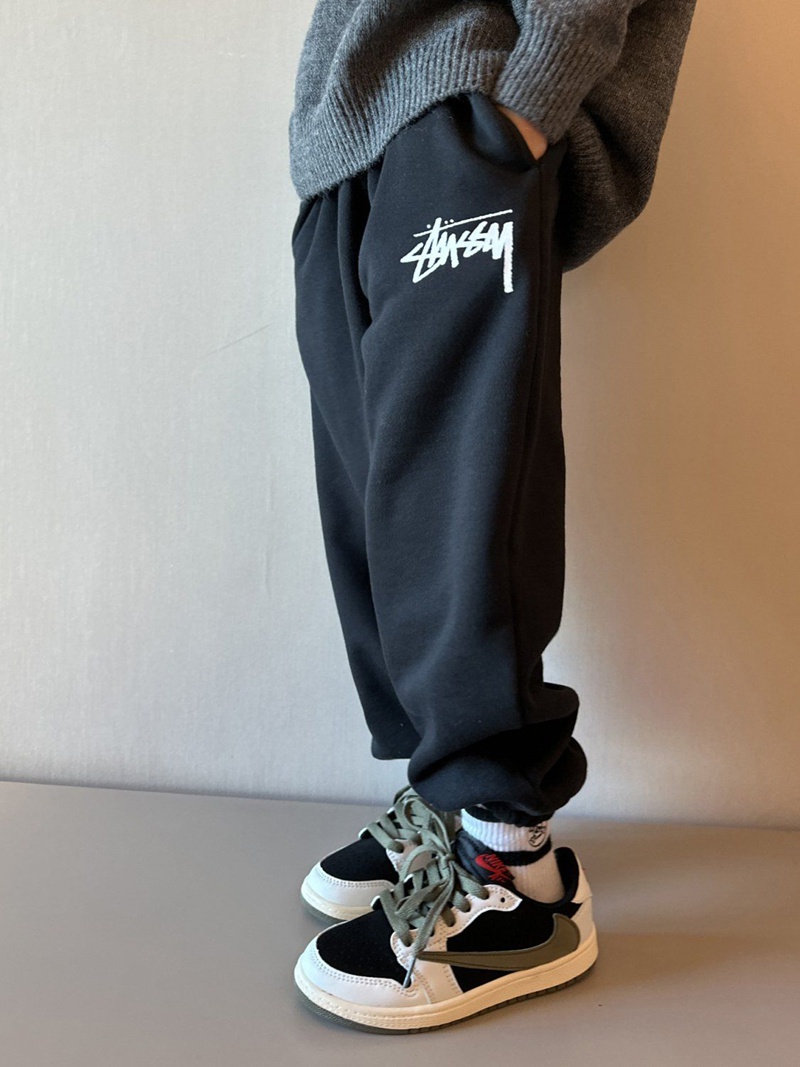 製品名: STUSSY キッズ 裏起毛 ズボン ステューシー子供スウェットパンツ 秋冬 厚手 防寒 長ズボン 通学 通園 部屋着 ルームウェア アウトドア 男の子 女の子 ブラック グレー スウィートボーイ